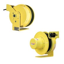 Conductix-Wampfler 1900 Series and 2400 Series PowerReel spring-driven cable reels are built to NEMA 4 standards for indoor or outdoor use. The two-piece cable roller guide has a mounting range of 345 degrees. The cable reel’s spring motor canister is sealed and lubricated for life.