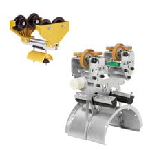 Conductix-Wampfler I-Beam festoon systems are designed to hold up in tough environments. Trolleys are available for both flat and round cables. For high speed or heavy cable applications, Conductix manufactures motorized cable trolleys.