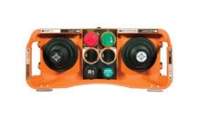 Conductix-Wampfler’s L40 Series radio remote control is a belly box style transmitter. It has dual joysticks, 5 speeds, and up to 8 motions. The transmitter is very light, weighing only 1.9 lb (0.86 kg) with batteries.