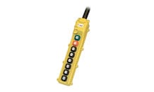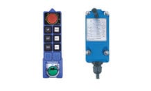 Conductix-Wampfler L8 Series radio remote controls are intended for single-speed applications where three motions (i.e. hoist, trolley, and bridge) are required. The L8 is available for either AC or DC operation and uses two AA batteries.
