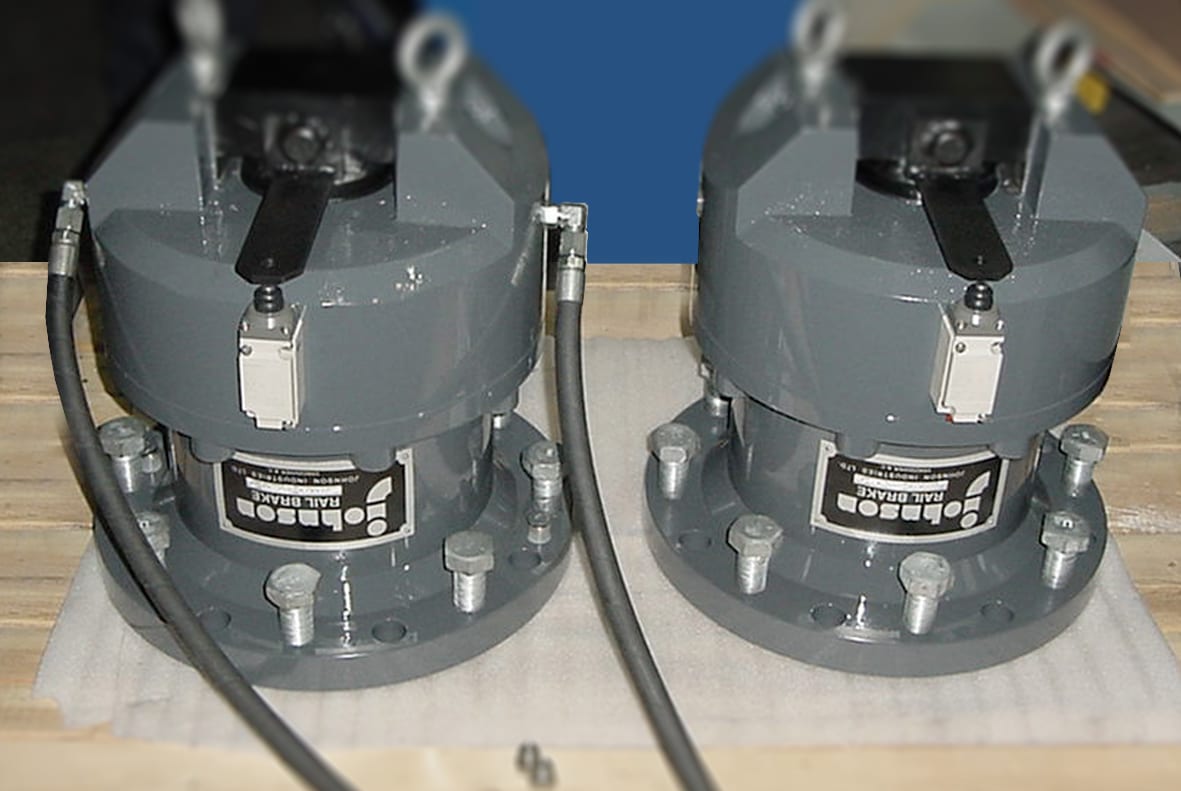 Johnson rail brakes use spring force to apply pressure directly to the top of a rail head. This protects rail mounted equipment during high winds or storms. Custom options are available to cater to your application.